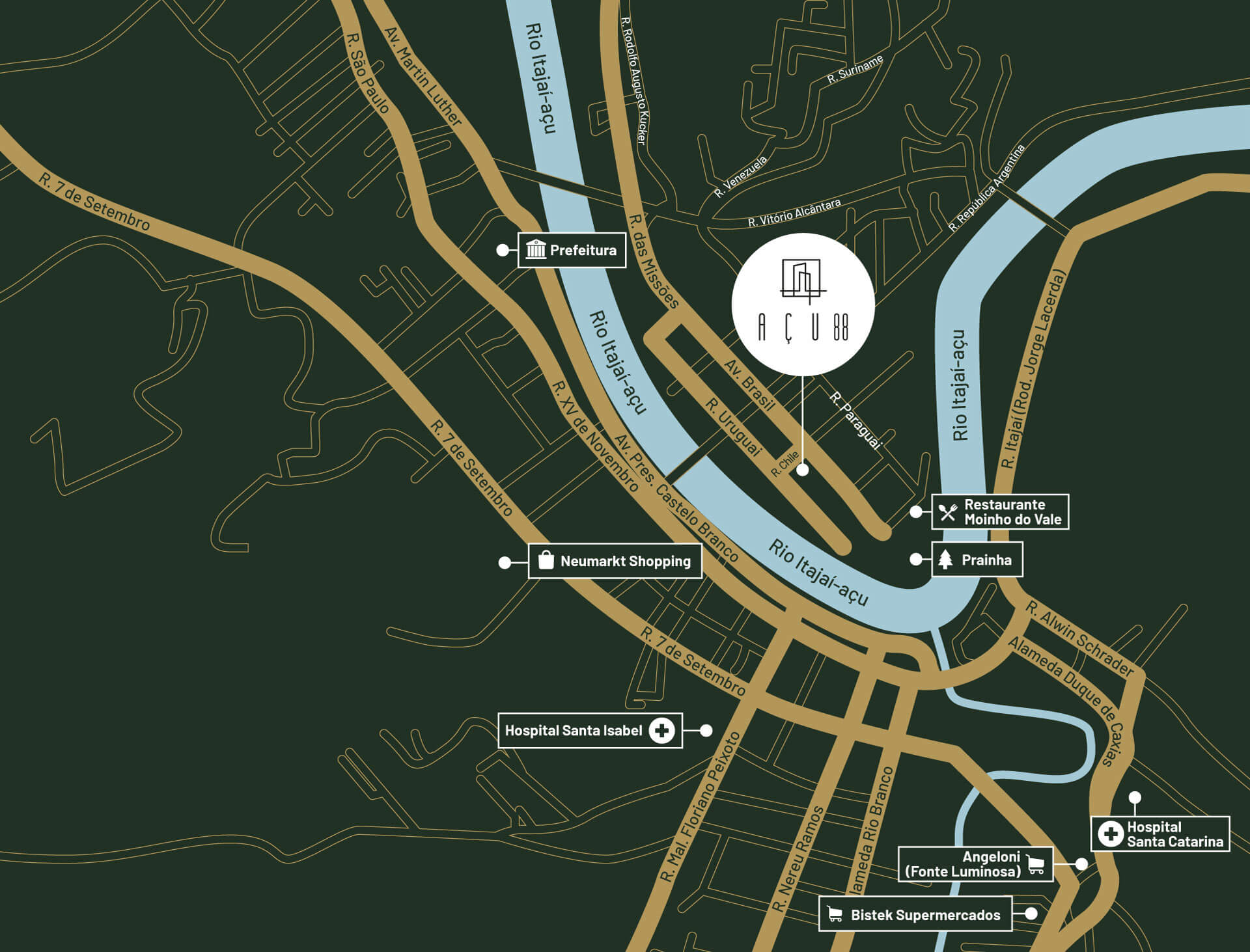 AÇU 88 - Localizado à margem do rio Itajaí Açu, a palavra “Açu” é um adjetivo do tupi guarani para “GRANDE, MAIOR OU ENORME”, terá 41 pavimentos mais 3 subsolos, se tornando o edificio mais alto de Blumenau, tendo em vista o uso misto (comércio, serviço e residência) como diferencial, distribuídos em seus 34.749,03m² de área construída. Tudo o que você precisa está aqui, sem sair de casa.